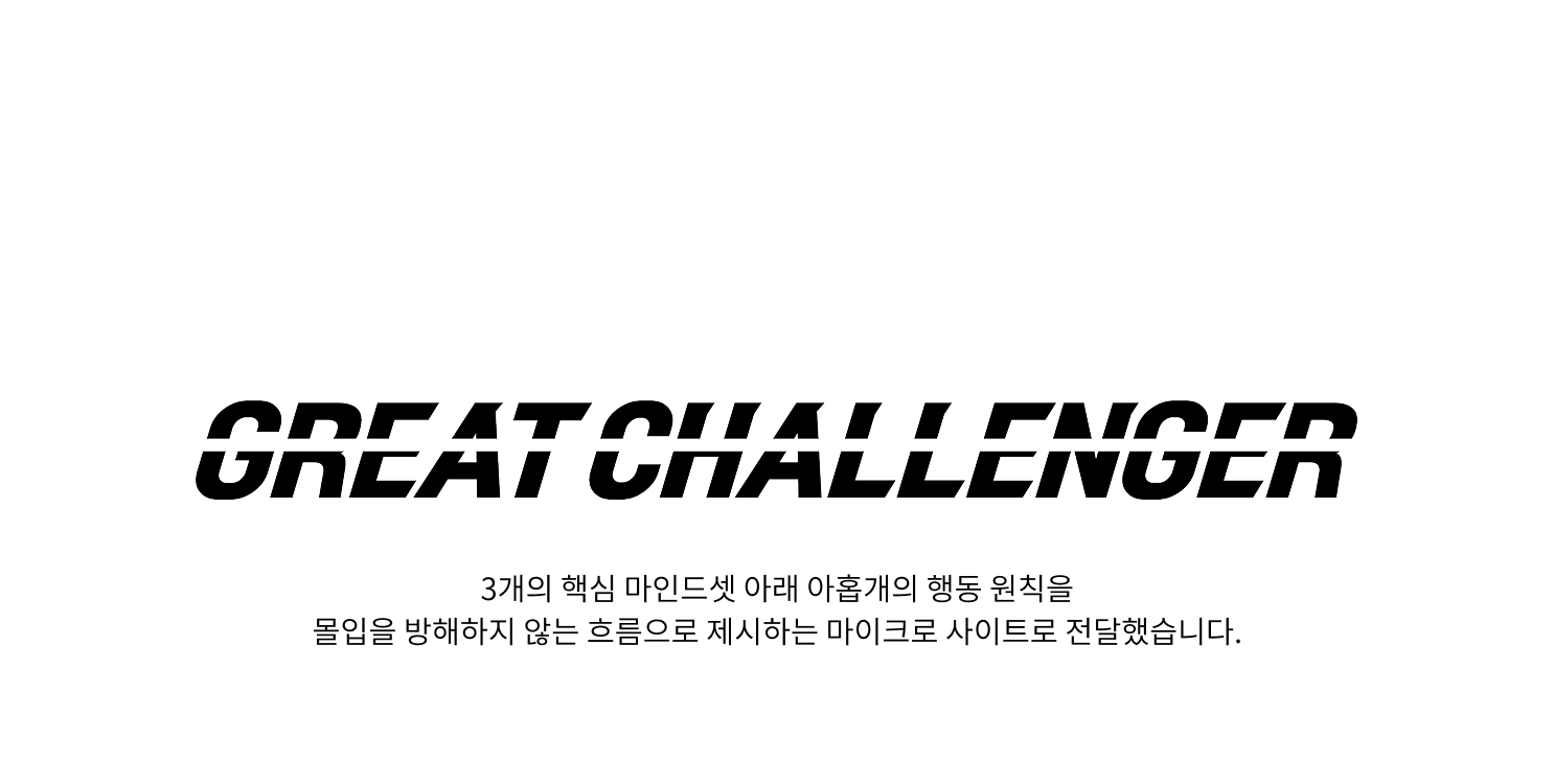 조직이 지향하는 핵심 가치를 체화할 수 있는 마이크로 사이트가 제작되었습니다. 브랜드가 추구하는 방향을 구성원들로 하여금 공감대를 형성하고 같은 지향점을 바라볼 수 있도록 가이드 하고자 하였습니다.